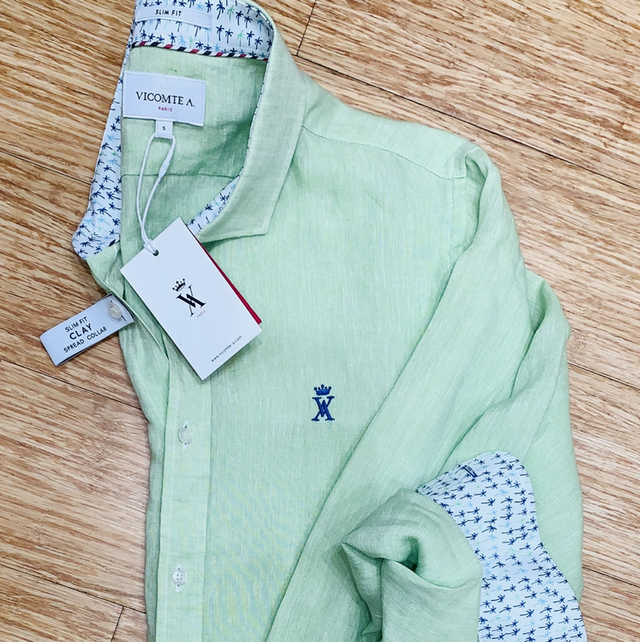 Chemise de la marque française Vicomte A, 100 % lin, neuve avec étiquette, vendue en magasin 135 €