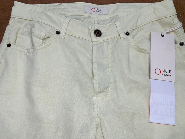 Pantalon 5 poches (coupe jean) de la marque italienne Teleria Zed, fabriqué en Italie 🇮🇹 61 % lin, 37 % lyocell et 2 % élasthanne, neuf étiquette, vendu en magasin 139 €