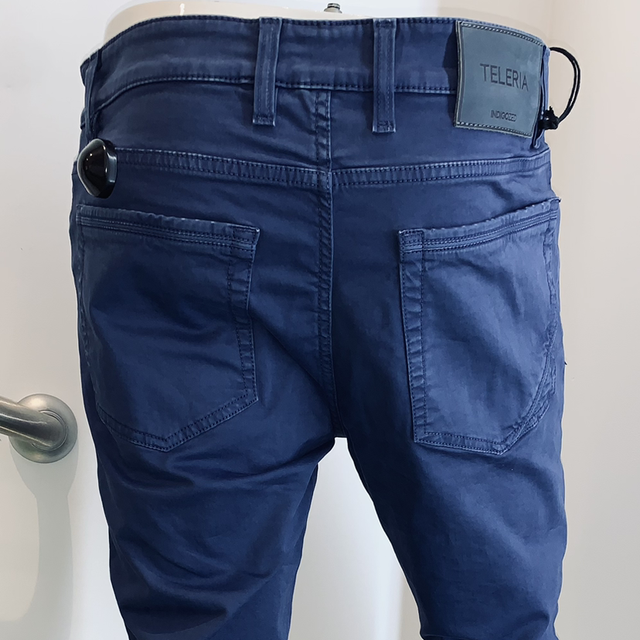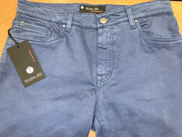 Pantalon 5 poches de la marque italienne Teleria Zed, fabriqué en Italie, 97 % coton et 3 % élasthanne Couleur bleu comme sur les deux premières photos