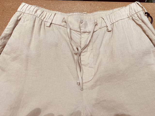 Pantalon avec un cordon à la taille de la marque italienne 🇮🇹 Teleria Zed, fabriqué en Italie, 52% lin, 47 % coton et 1 % élasthanne, neuf avec étiquette, vendu en magasin 129 %