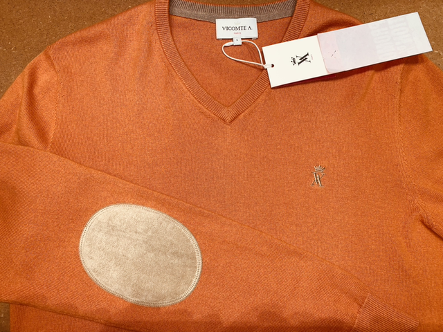 Pull en col V de la marque française Vicomte A, 90 % coton et 10 % cachemire.