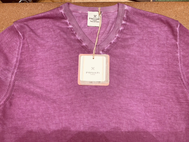 Pull en col V de la marque italienne Privati Firenze, fabriqué en Italie, 100 % coton avec une teinture naturelle